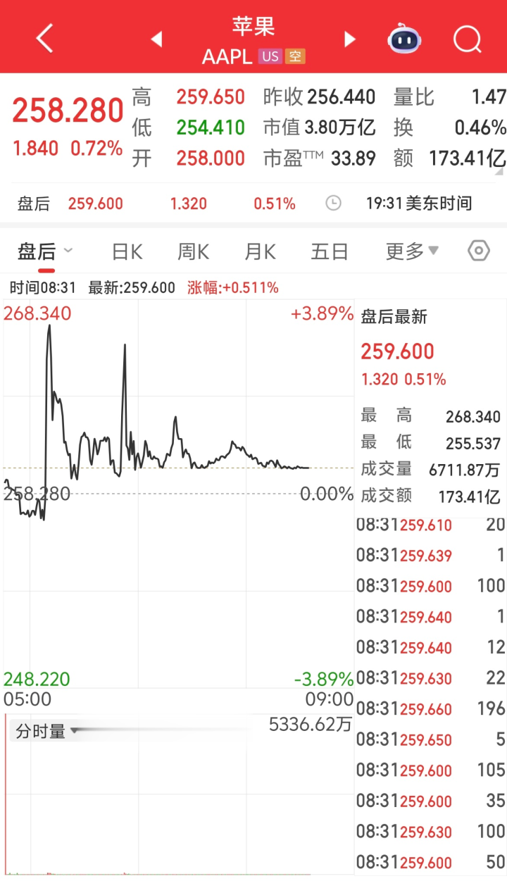 美东时间1月29日周四,1月30日消息,苹果(AAPL.US)第一财季(“2025年第四季度”)营收1,437.6亿美元,同比增长16%;第一财季IPhone收入852.7亿美元,同比增长23%;第一财季Mac收入83.9亿美元,同比减少6.7%;第一财季IPad收入86.0亿美元,同比增长6.3%;第一财季可穿戴设备、家居与配件114.9亿美元,同比减少2.2%;第一财季每股收益2.84美元,上年同期2.40美元;现金及现金等价物453.2亿美元,同比增长50%。受该消息影响苹果盘后一度涨超3%。